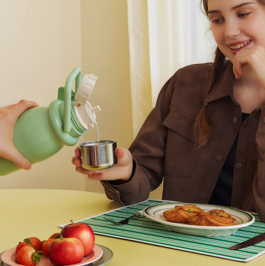 The lid doubles as a cup – perfect for those times when you need an extra serving or want to share a drink.